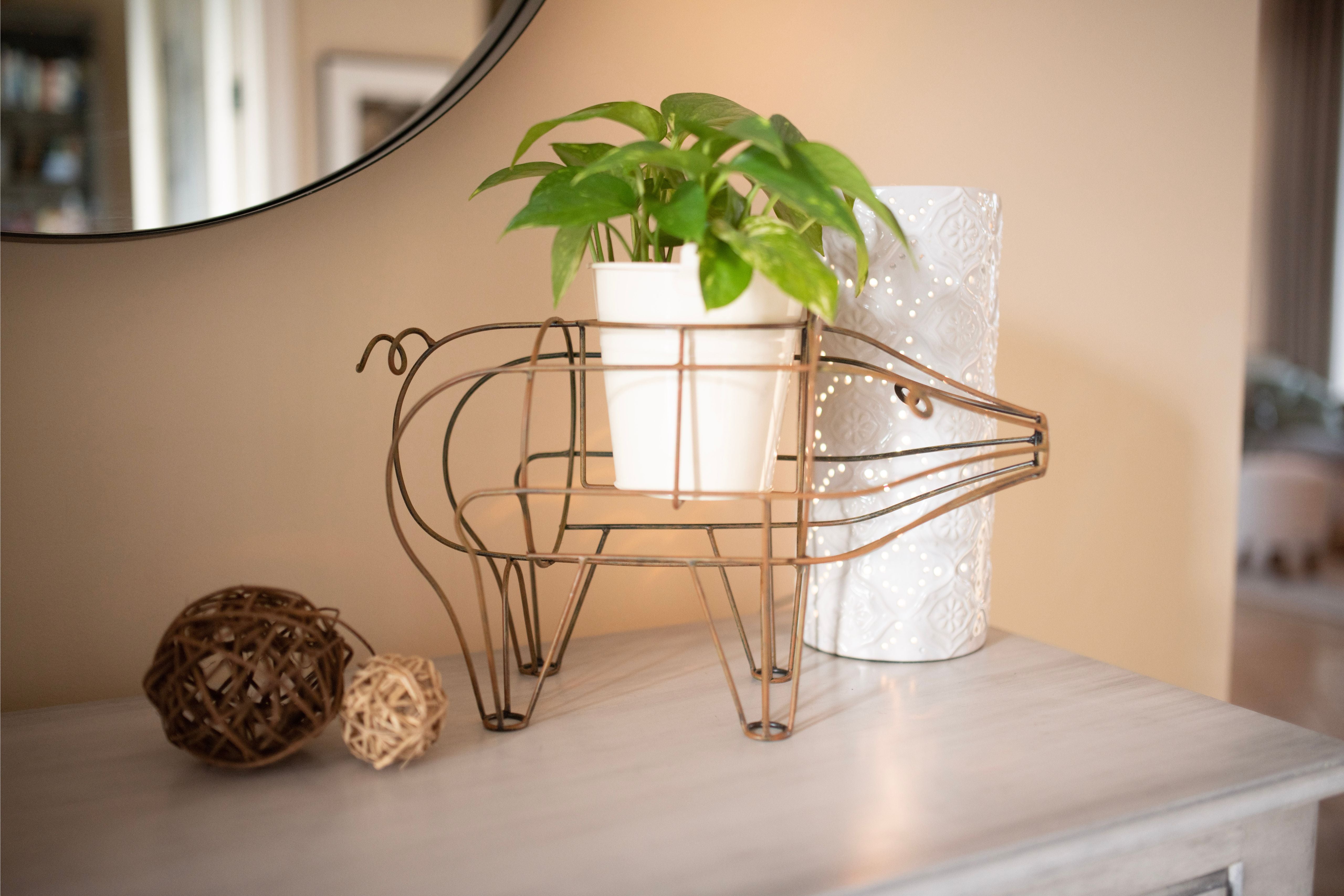Rose Gold Metal Pig-Shaped Plant Stand with Pot