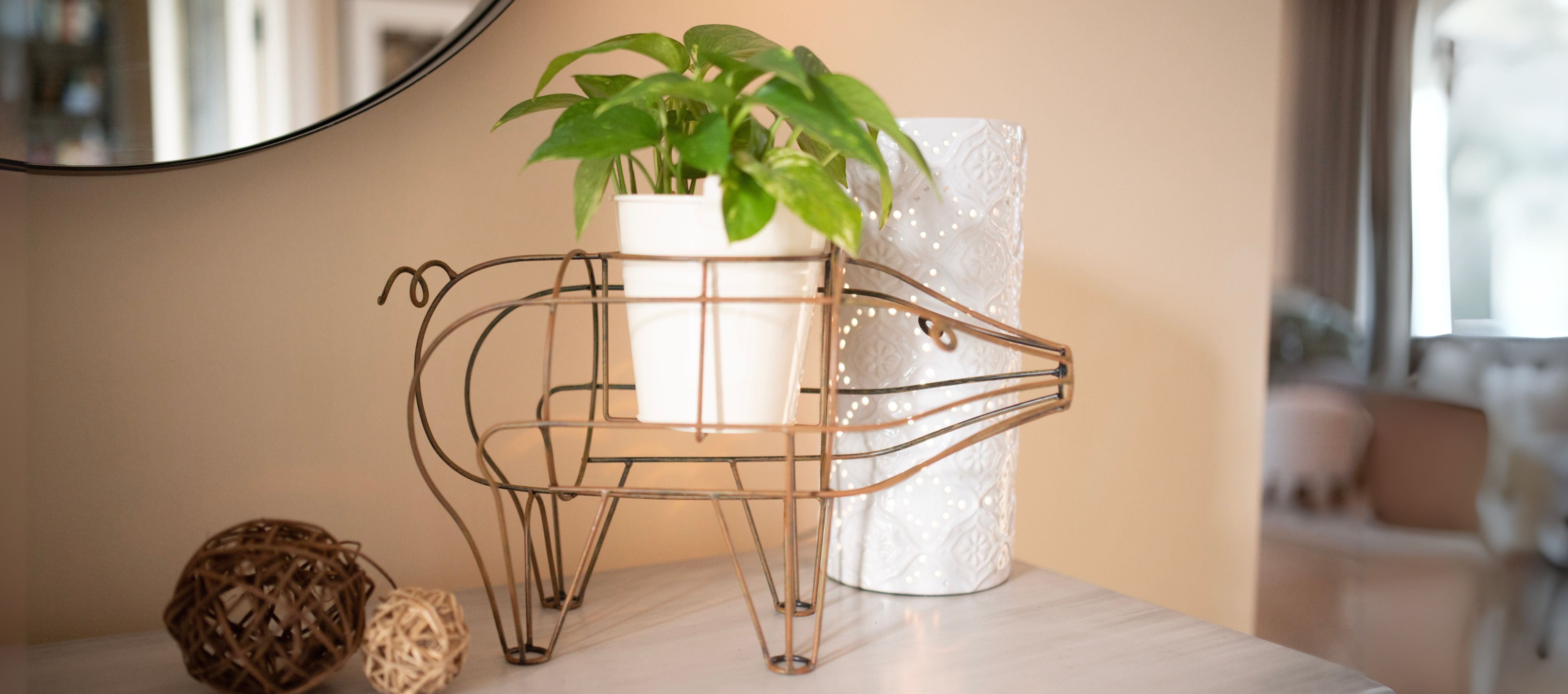 Rose Gold Metal Pig-Shaped Plant Stand with Pot